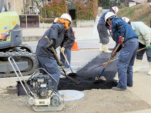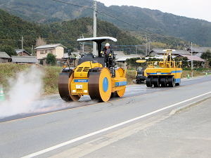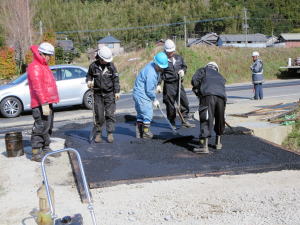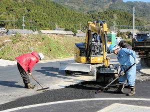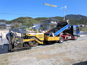 | 既存のアスファルトをはがす | 舗装の下地を作る | 熱いうちに広げる |