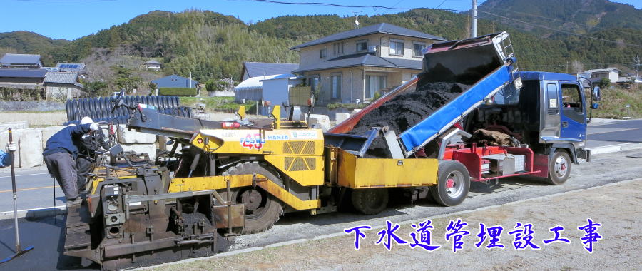 | 下水道管埋設工事 珍しいいろいろな車両が来る | ||