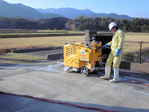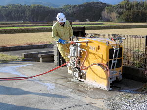 | 既存のコンクリートを切る | 反対側も切る | 切った直後のコンクリート |